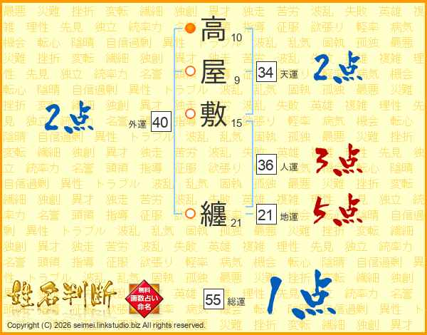 高屋敷纏さんの総運は55画の1点!