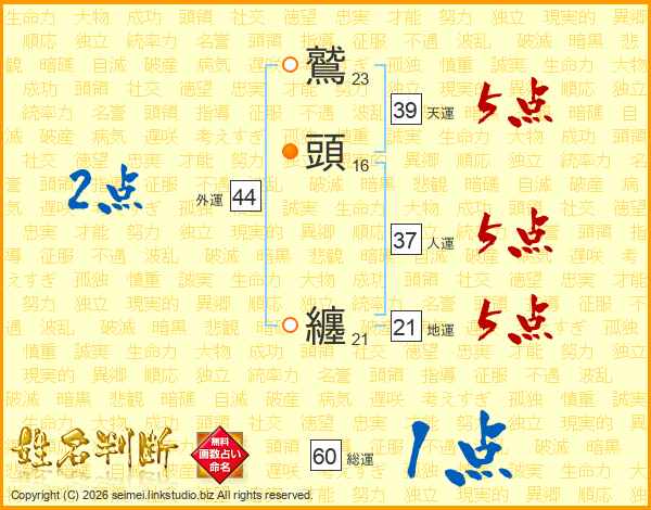 鷲頭纏さんの総運は60画の1点!
