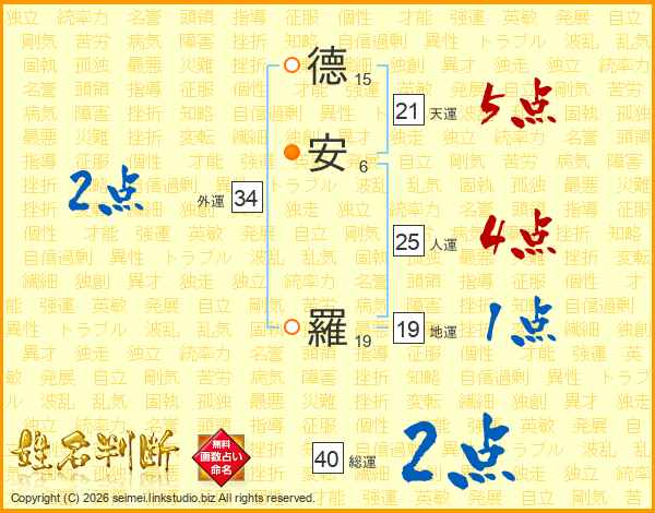 德安羅さんの総運は40画の2点!