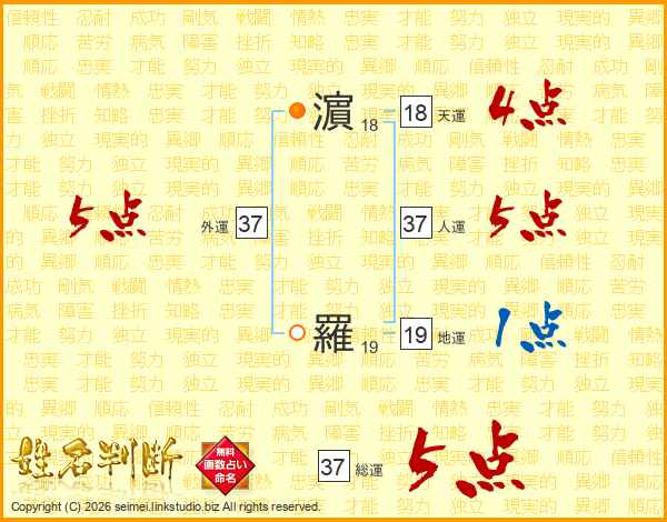 濵羅さんの人運は37画の5点!