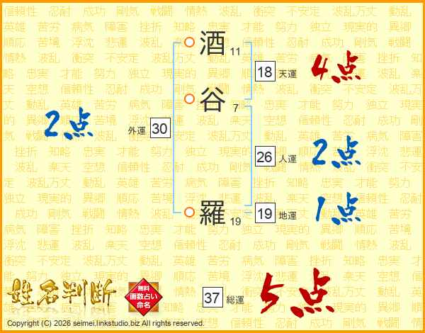 酒谷羅さんの総運は37画の5点!