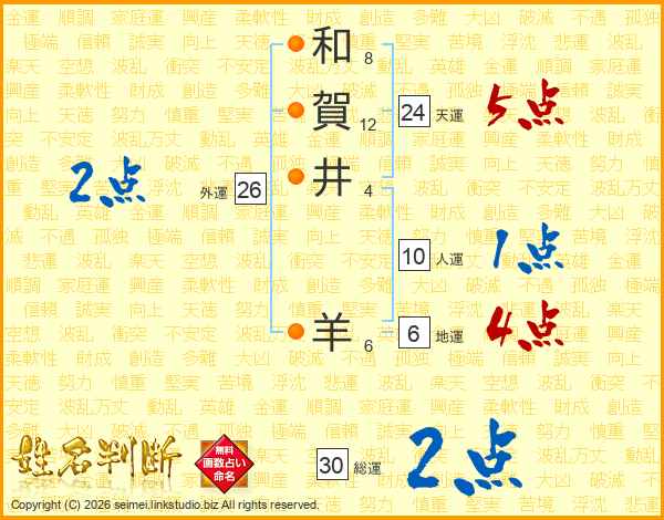 和賀井羊さんの天運は24画の5点!