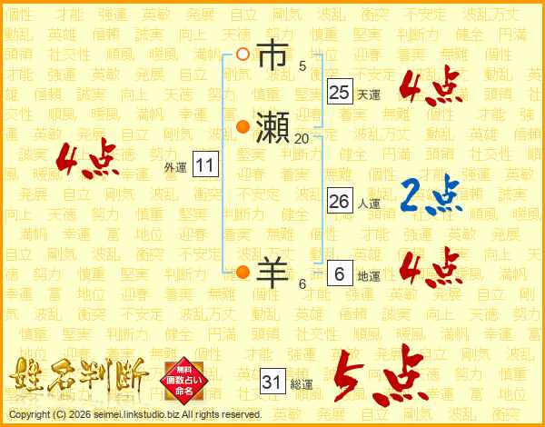 市瀬羊さんの総運は31画の5点!