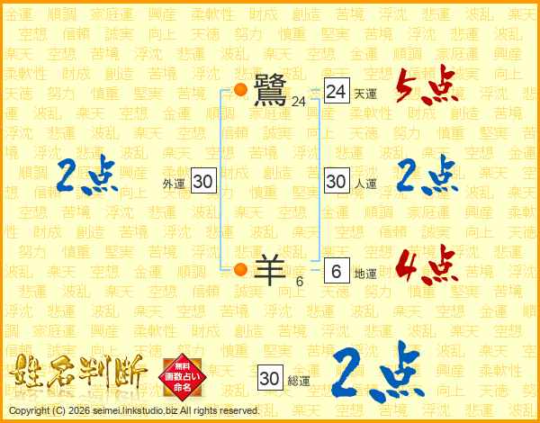 鷺羊さんの総運は30画の2点!