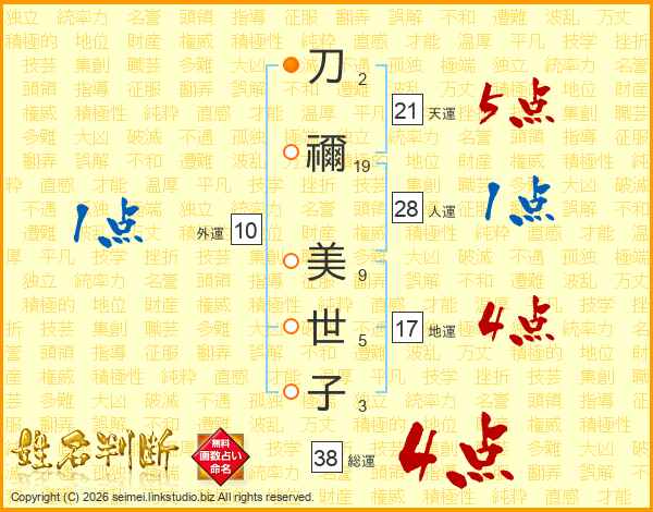 刀(2画)禰(19画) 美(9画)世(5画)子(3画)