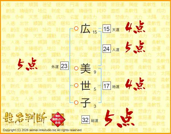 広美世子さんの外運は23画の5点!