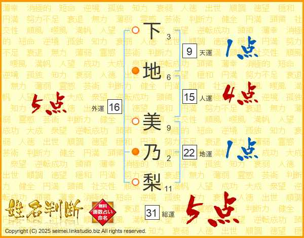 下地美乃梨さんの総運は31画の5点!