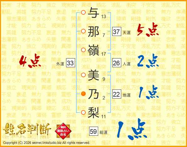 与那嶺美乃梨さんの天運は37画の5点!
