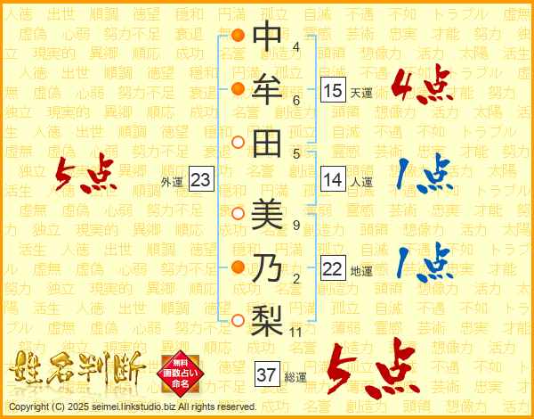 中牟田美乃梨さんの総運は37画の5点!
