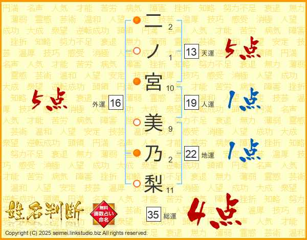二ノ宮美乃梨さんの外運は16画の5点!