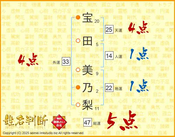 宝田美乃梨さんの天運は25画の4点!