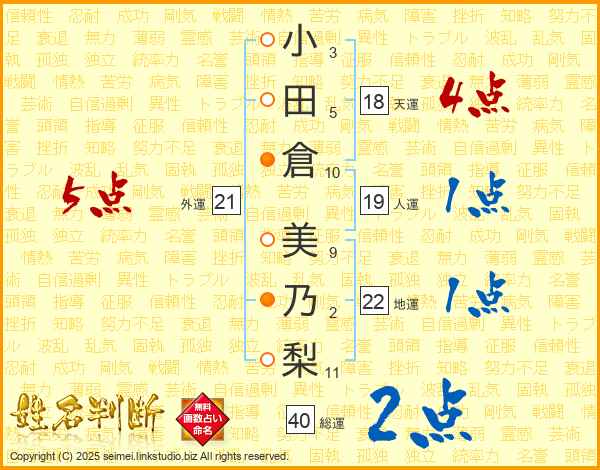 小田倉美乃梨さんの天運は18画の4点!