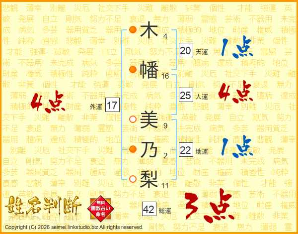 木幡美乃梨さんの外運は17画の4点!