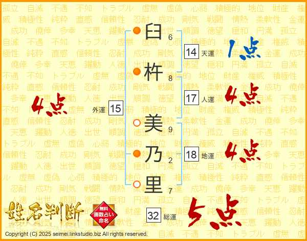 臼杵美乃里さんの総運は32画の5点!