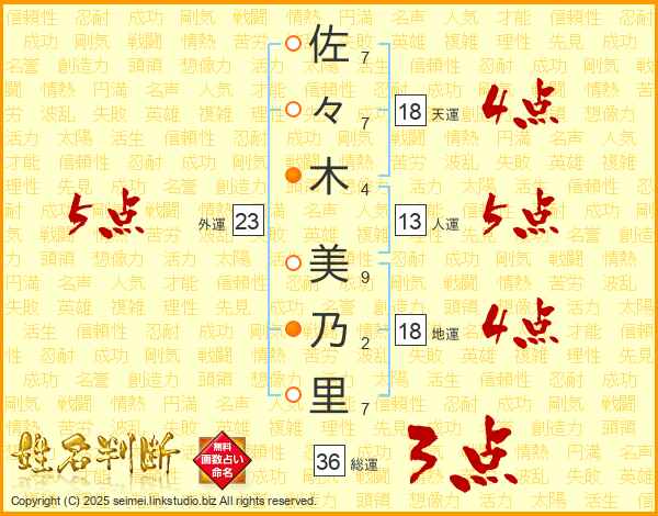 佐々木美乃里さんの総運は36画の3点!