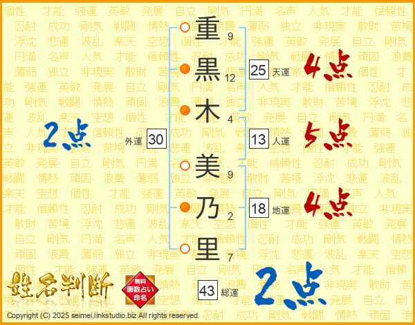 重黒木美乃里さんの天運は25画の4点!