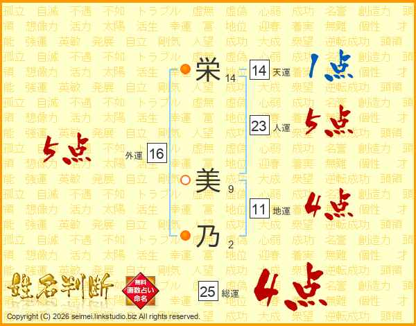 栄(14画) 美(9画)乃(2画)