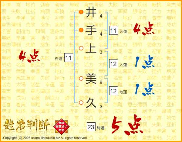 井(4画)手(4画)上(3画) 美(9画)久(3画)