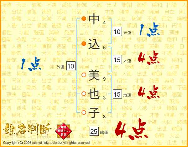 中込美也子さんの総運は25画の4点!