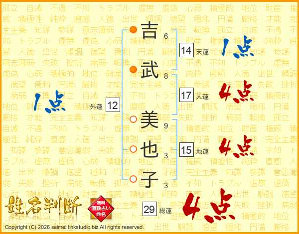 吉武美也子さんの総運は29画の4点!