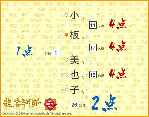 小板美也子さんの総運は26画の2点!