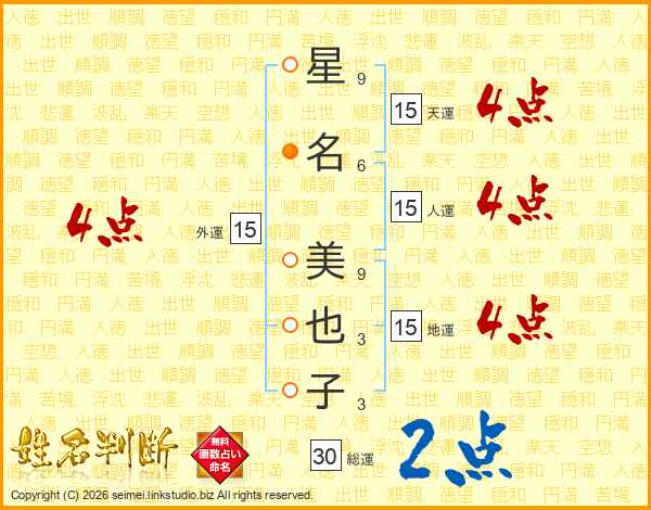 星(9画)名(6画) 美(9画)也(3画)子(3画)