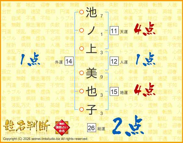 池ノ上美也子さんの総運は26画の2点!