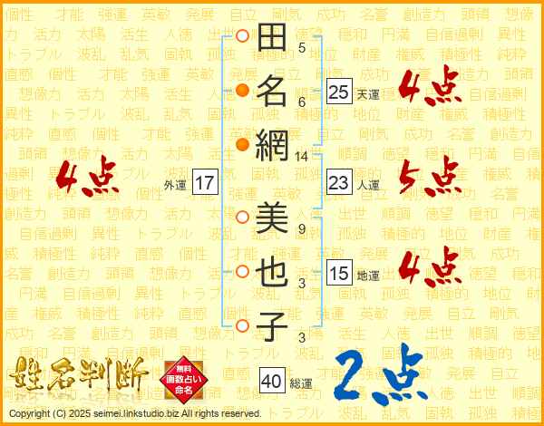 田名網美也子さんの天運は25画の4点!