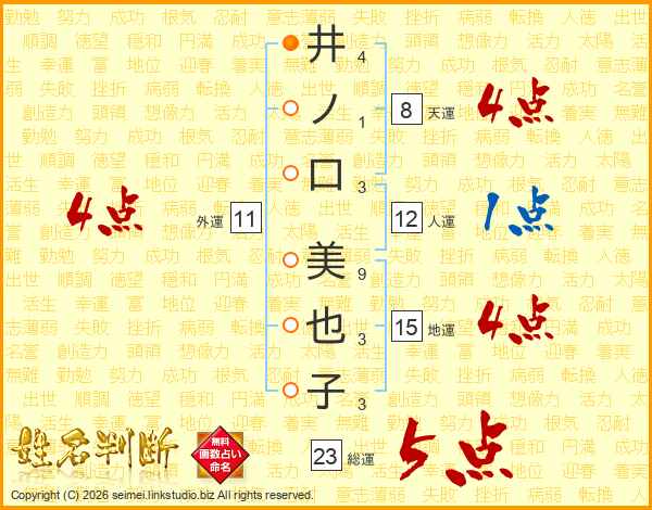 井ノ口美也子さんの総運は23画の5点!