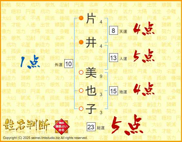 片(4画)井(4画) 美(9画)也(3画)子(3画)
