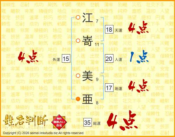 江(7画)嵜(11画) 美(9画)亜(8画)