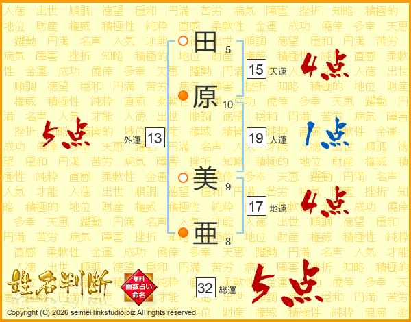 田原美亜さんの総運は32画の5点!