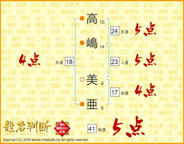 高嶋美亜さんの総運は41画の5点!