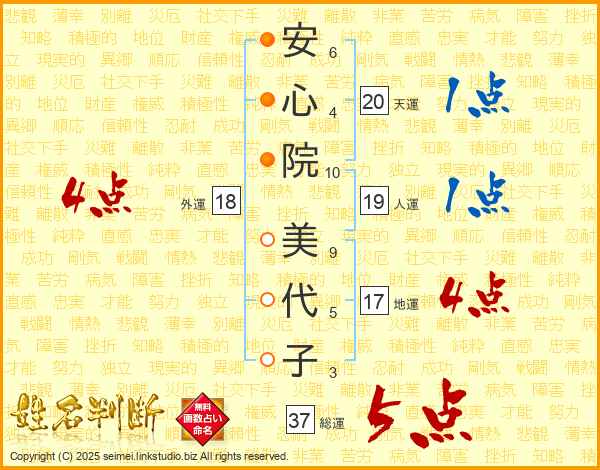 安心院美代子さんの総運は37画の5点!
