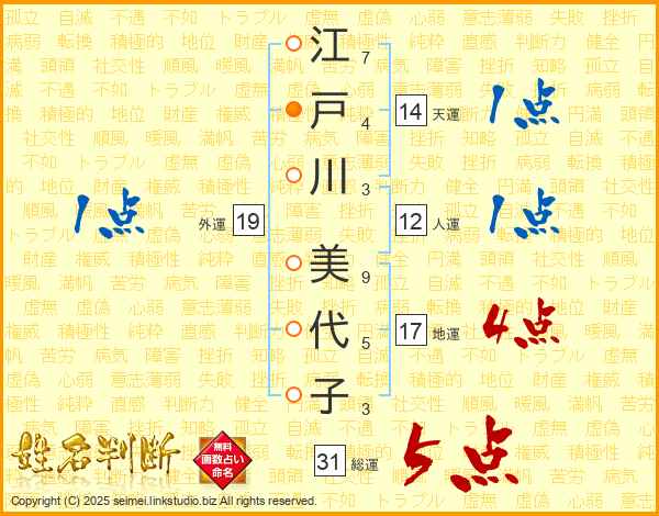 江戸川美代子さんの総運は31画の5点!