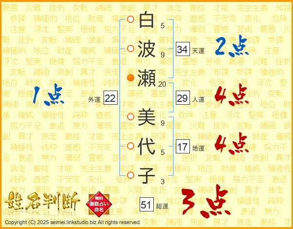 白波瀬美代子さんの総運は51画の3点!