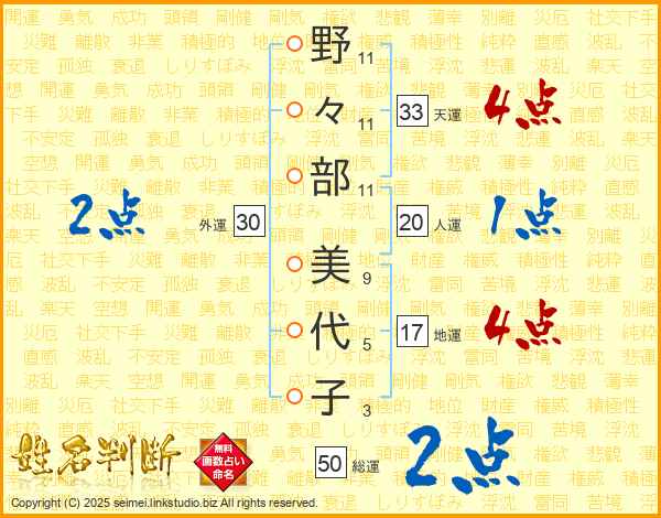野々部美代子さんの総運は50画の2点!