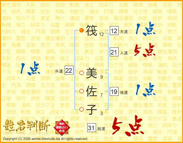 筏美佐子さんの総運は31画の5点!