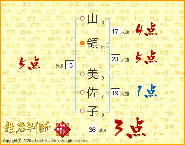 山領美佐子さんの人運は23画の5点!