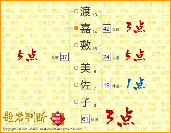 渡嘉敷美佐子さんの外運は37画の5点!
