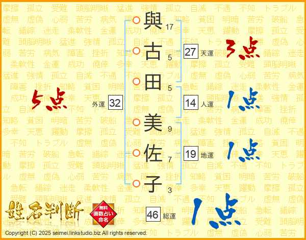 與古田美佐子さんの外運は32画の5点!