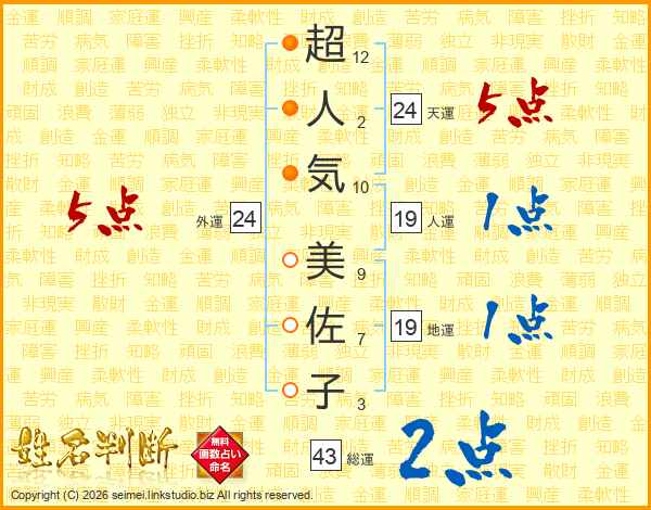 超人気美佐子さんの総運は43画の2点!
