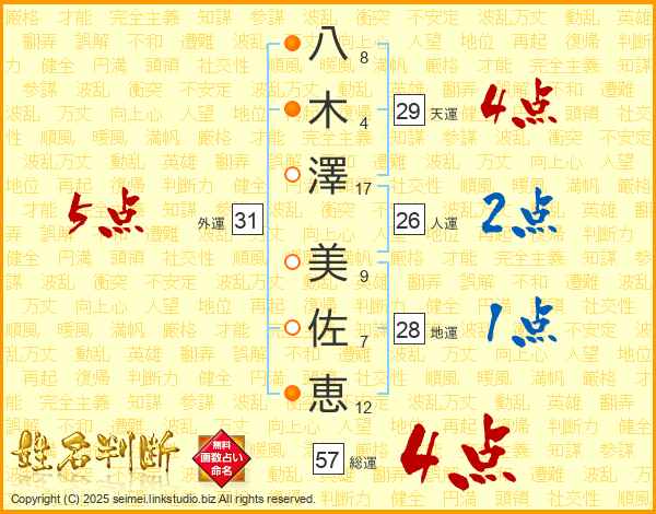 八木澤美佐恵さんの天運は29画の4点!