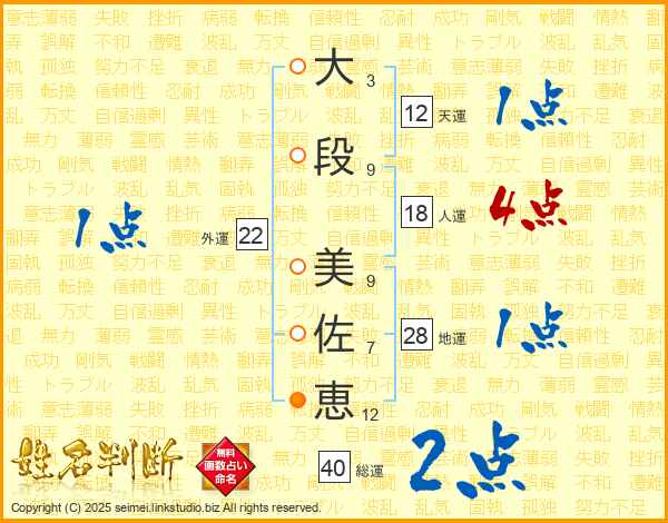 大段美佐恵さんの総運は40画の2点!