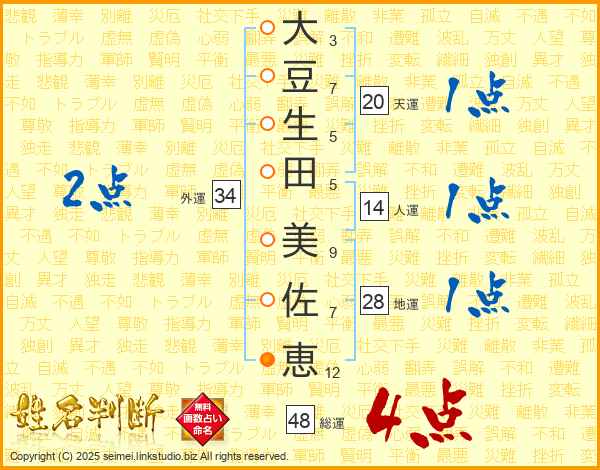 大豆生田美佐恵さんの総運は48画の4点!
