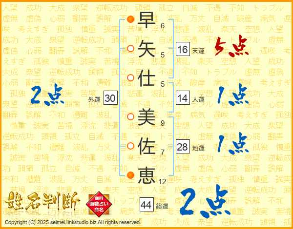 早矢仕美佐恵さんの総運は44画の2点!