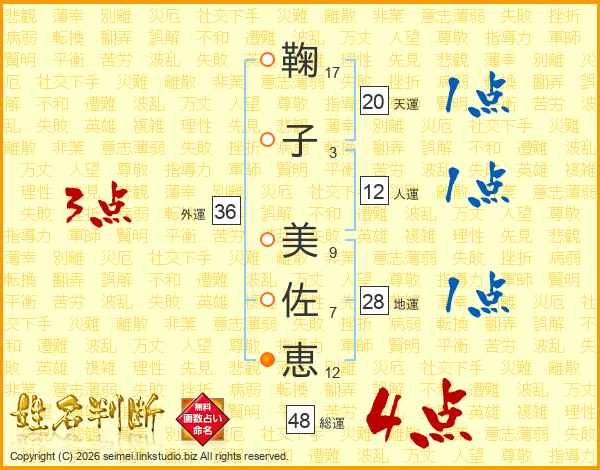 鞠子美佐恵さんの総運は48画の4点!
