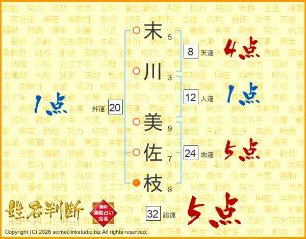 末川美佐枝さんの総運は32画の5点!