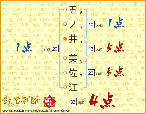 五ノ井美佐江さんの総運は33画の4点!
