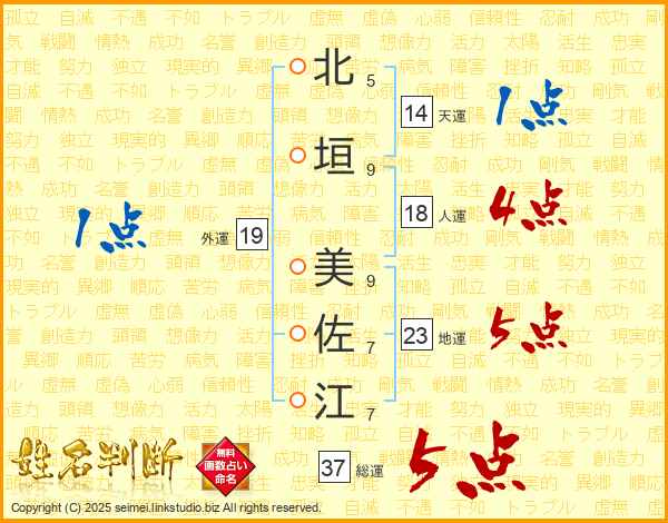 北垣美佐江さんの総運は37画の5点!